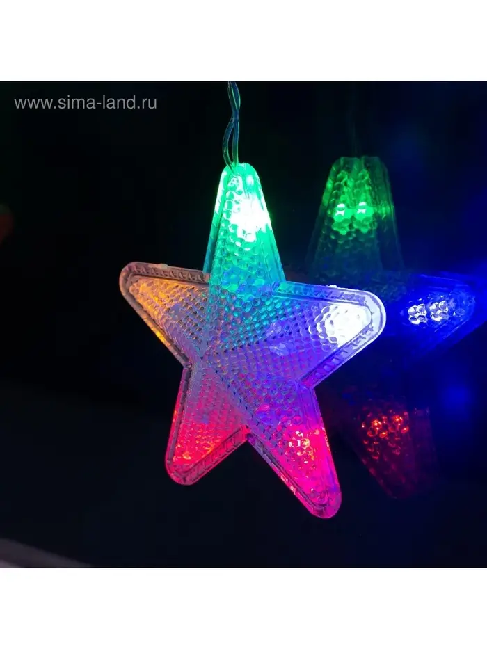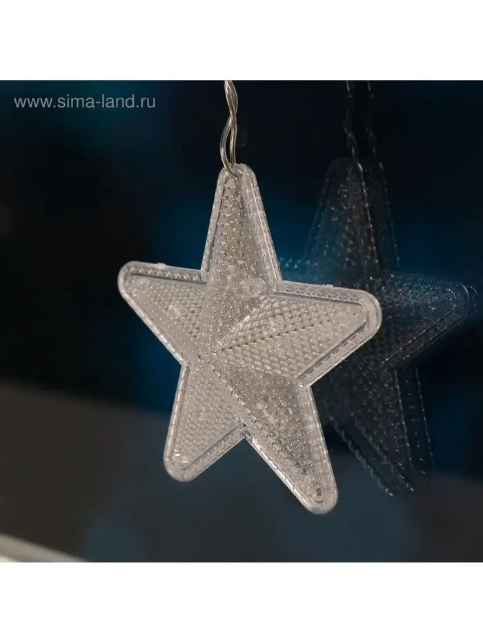 Гирлянда «Нить» 5 м с насадками «Звезда средняя», IP20, прозрачная нить, 20 LED, свечение мульти (RG/RB), мигание, 220 В