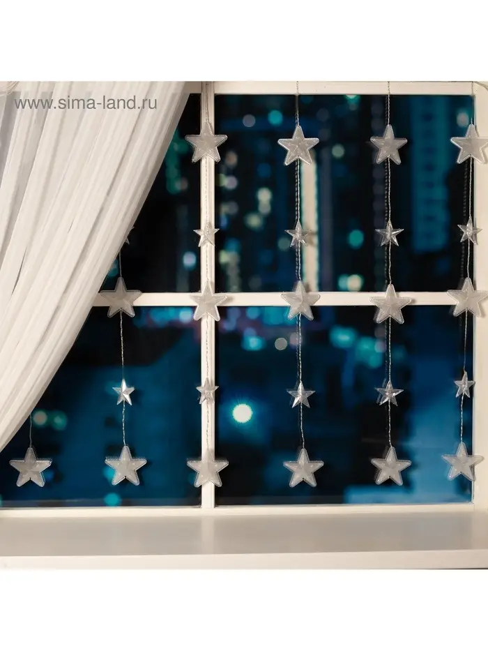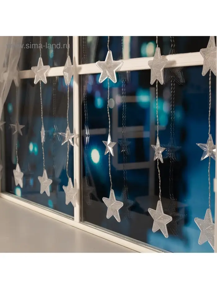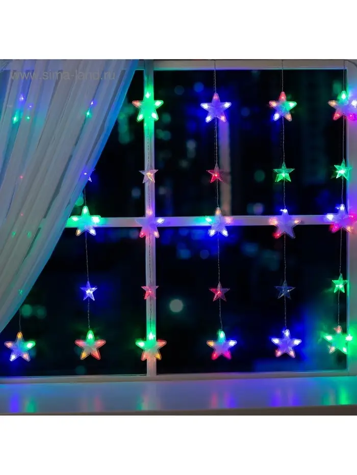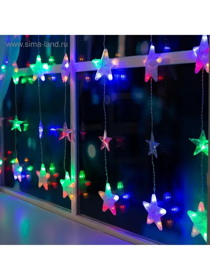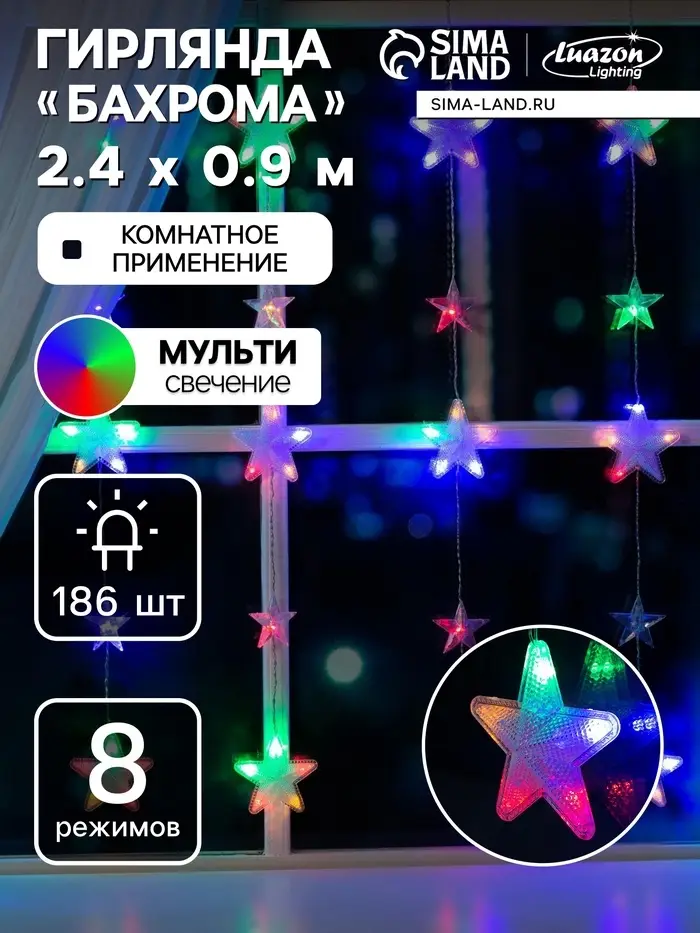 Гирлянда «Бахрома» 2.4×0.9 м с насадками «Звёздочки», IP20, прозрачная нить, 186 LED, свечение мульти, 8 режимов, 220 В