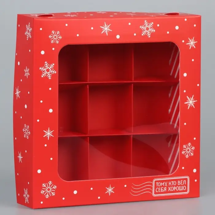 Коробка под 9 конфет с ячейками «Красивый новый год» 14.5×14.5×3.5 см