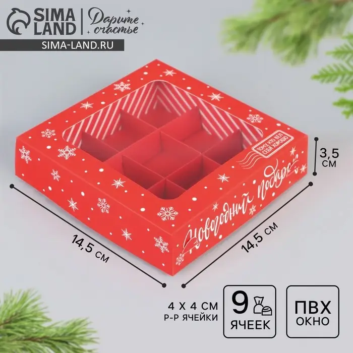 Коробка под 9 конфет «Новогодний подарок», 14.5×14.5×3.5 см