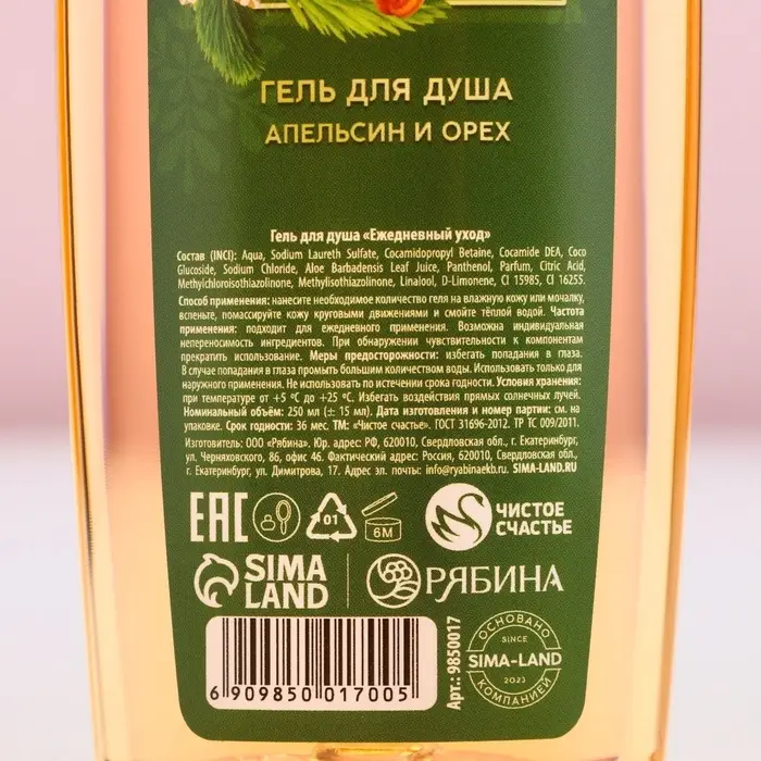 Гель для душа «Чудес в Новом Году!», 250 мл, аромат апельсина и орехов, Чистое счастье