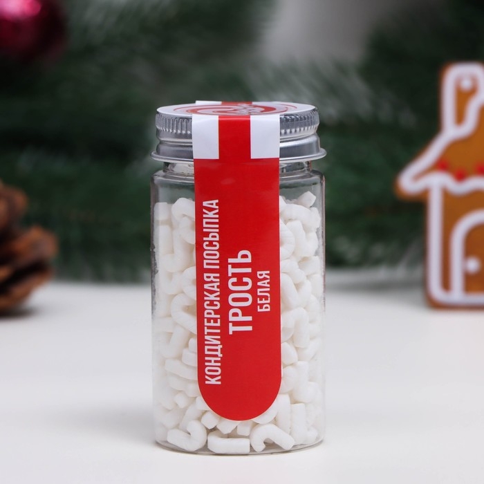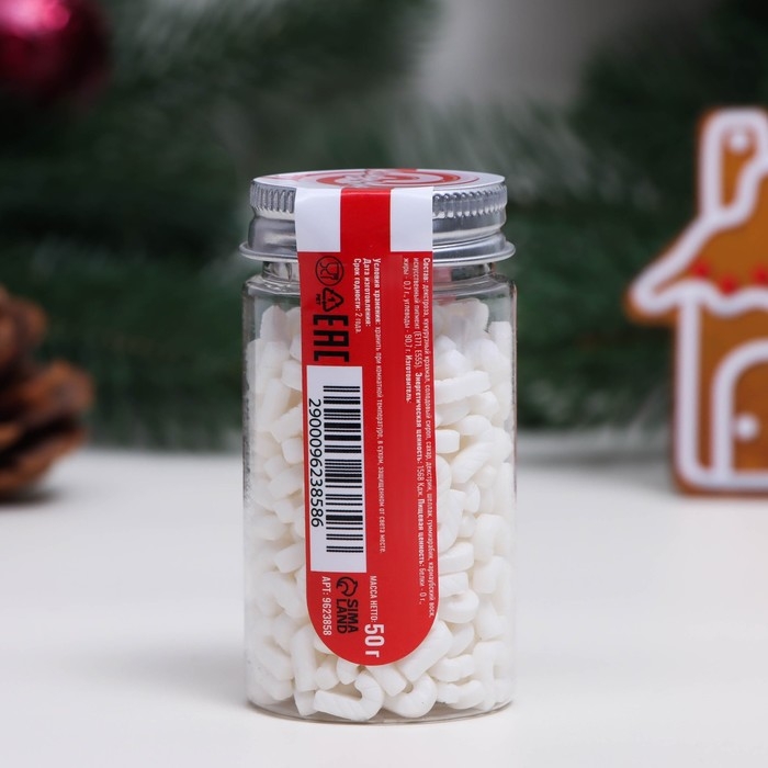 Новый год. Посыпка кондитерская "Трость", белая, 50 г