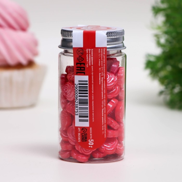 Посыпка кондитерская «Розы», красная, 50 г