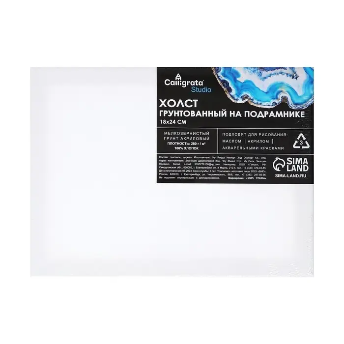 Холст на подрамнике, хлопок 100%, 1.6×18×24 см, акриловый грунт, мелкозернистый, 280 г/м²