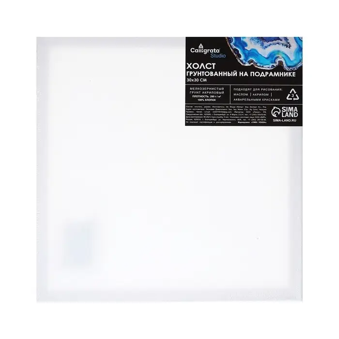 Холст на подрамнике, хлопок 100%, 1.6×30×30 см, акриловый грунт, мелкозернистый, 280 г/м²