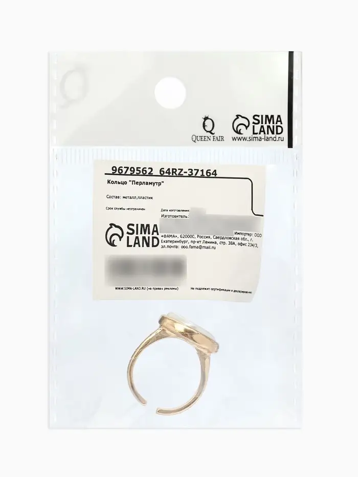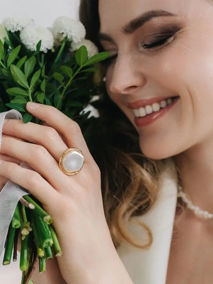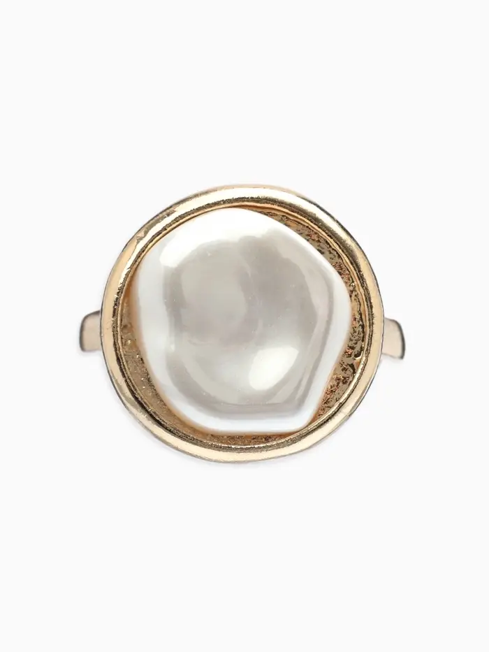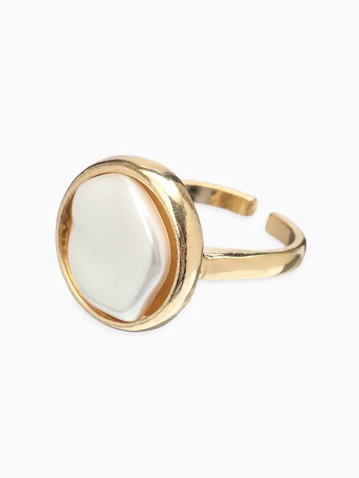 Кольцо «Перламутр», круг, белое в золоте, безразмерное