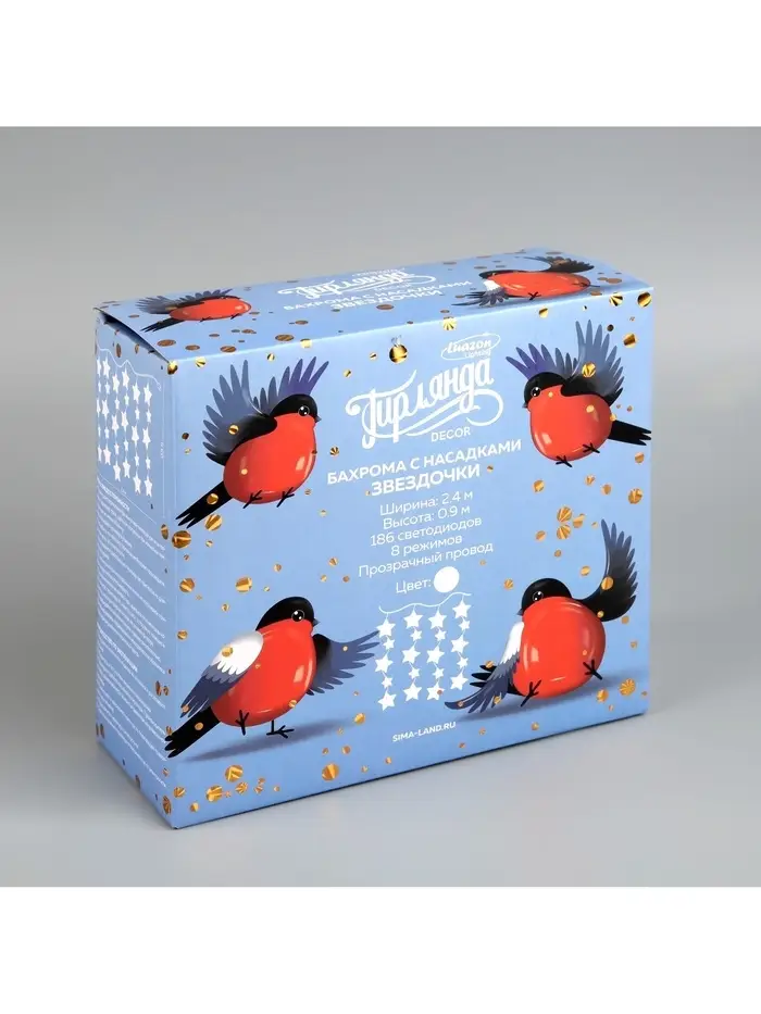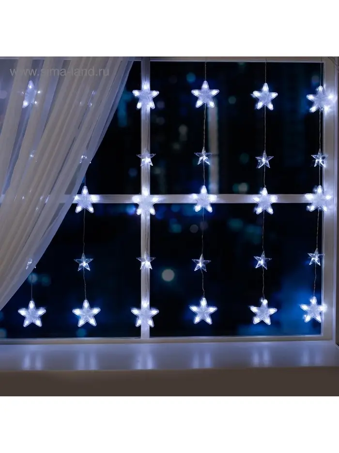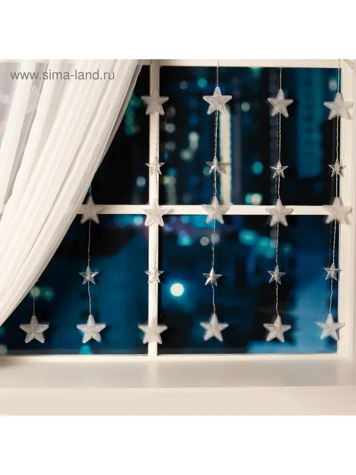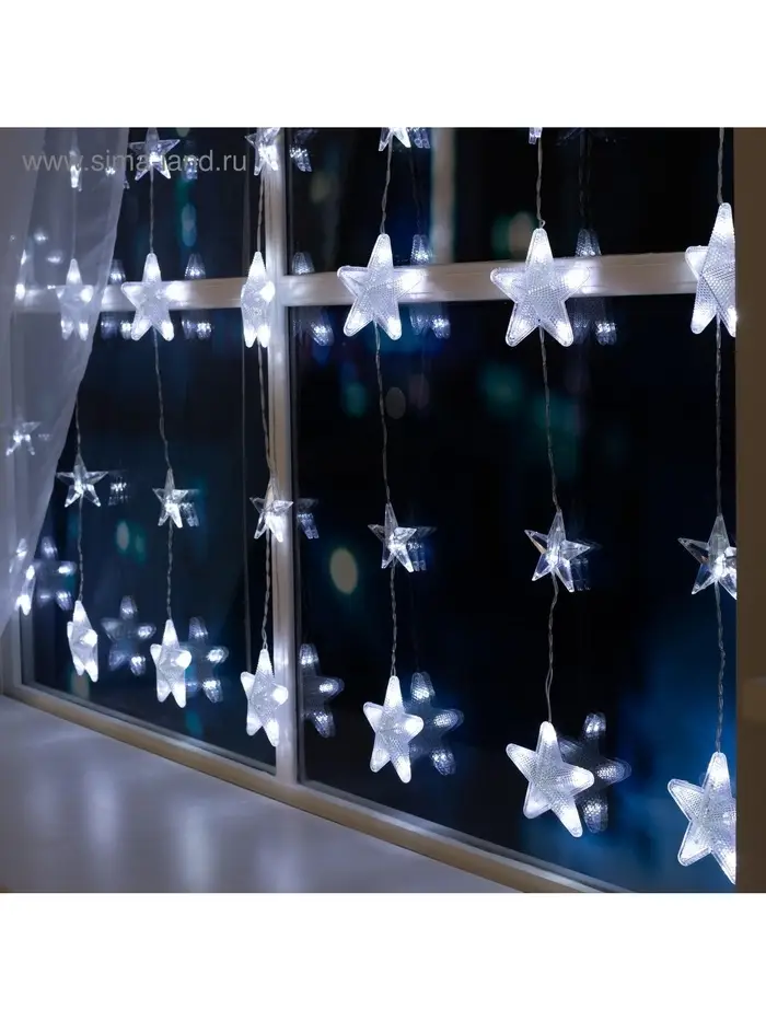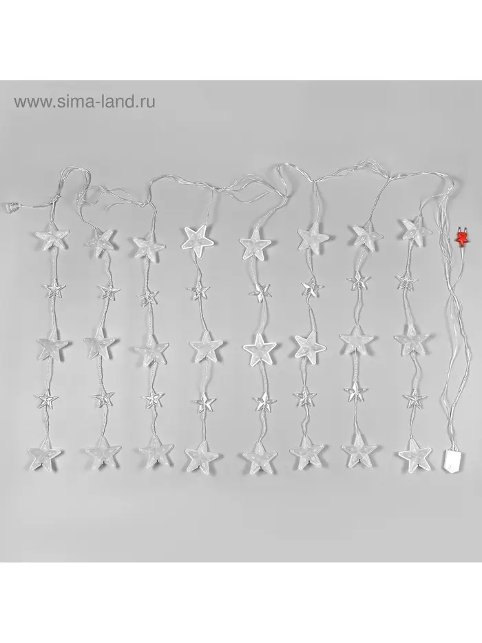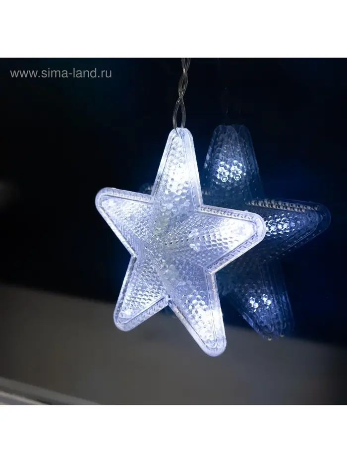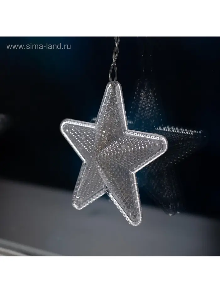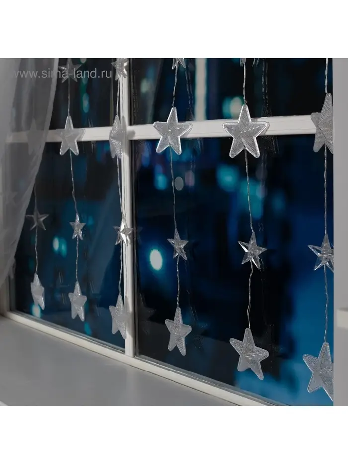 Гирлянда «Бахрома» 2.4×0.9 м с насадками «Звёздочки», IP20, прозрачная нить, 186 LED, свечение белое, 8 режимов, 220 В