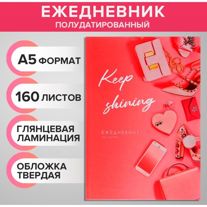 Ежедневник полудатированный на сшивке, А5 160 листов, картон 7БЦ, Атрибуты современности, глянцевая ламинация