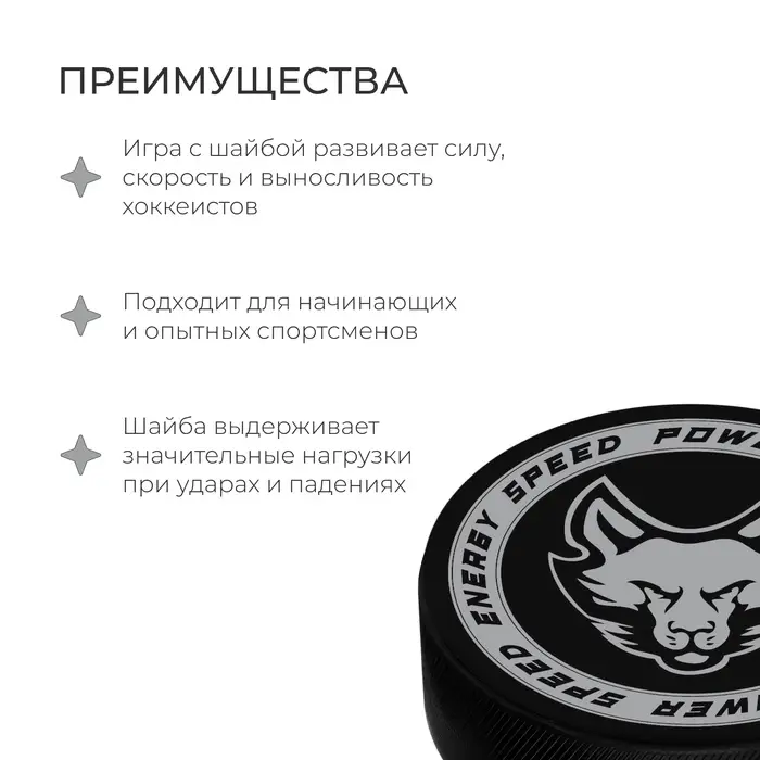 Шайба предназначена для игры в хоккей и тренировок на льду. Подходит для начинающих и опытных спортсменов. Изготовлена из вулканизированной резины, материал обеспечивает долгую эксплуатацию шайбы.