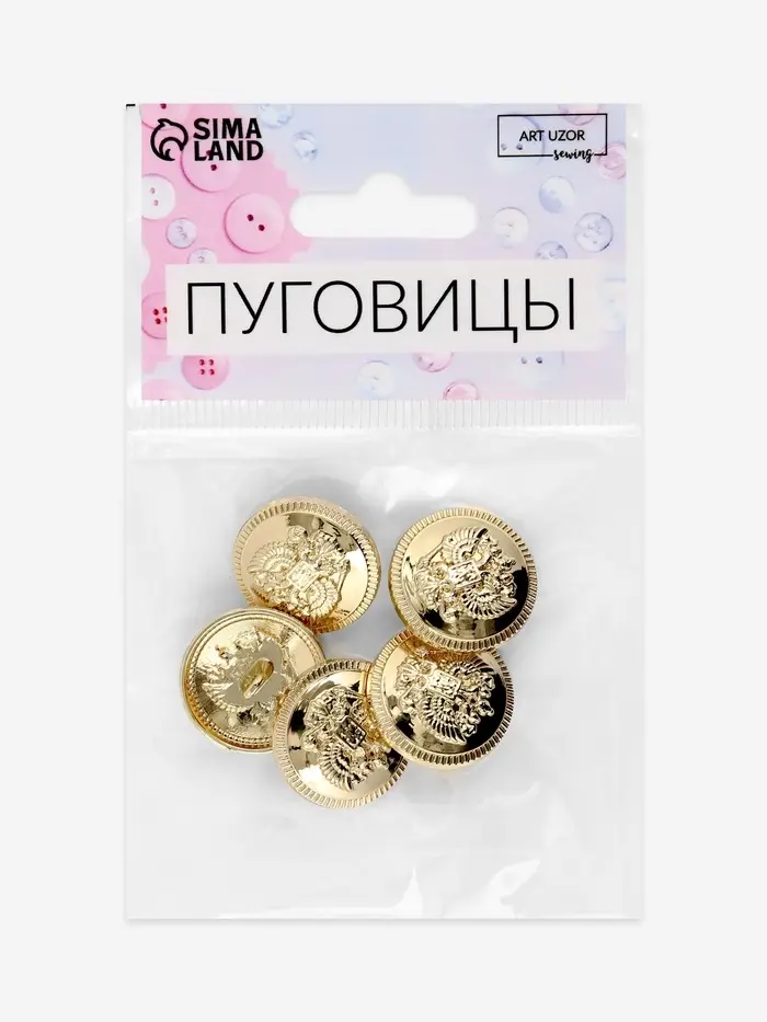 Набор пуговиц на ножке «Герб России», d=20 мм, 5 шт., цвет золотой