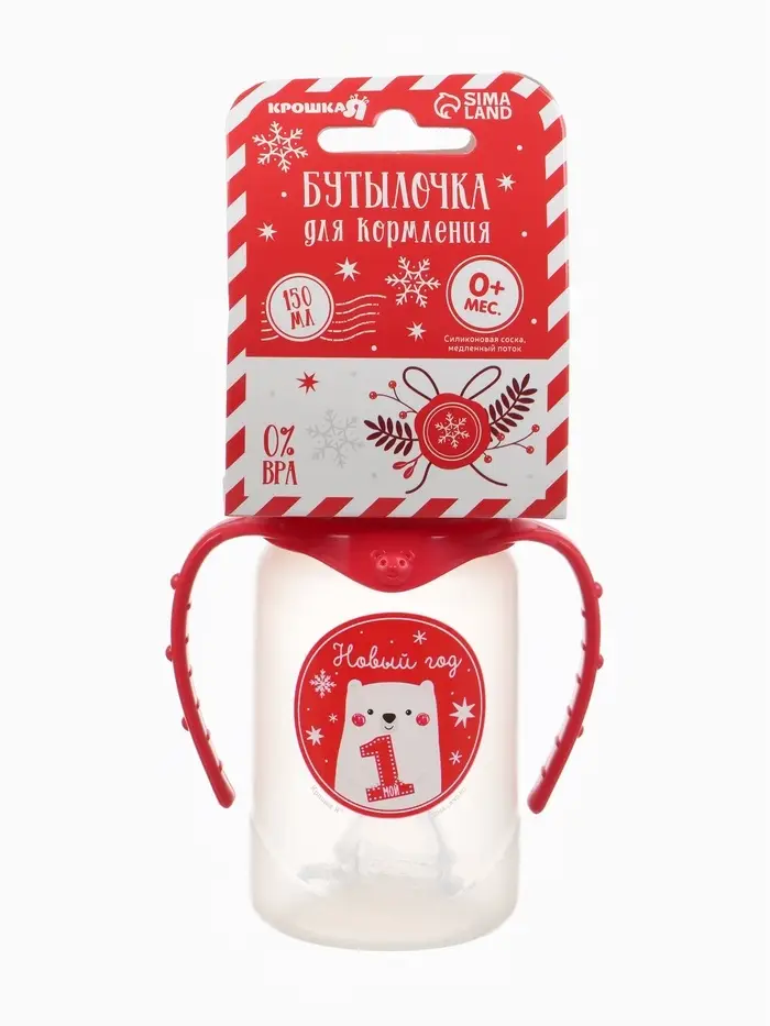 Бутылочка для кормления, новогодняя «Мой 1 Новый год», классическое горло, 150 мл., от 0 мес., цилиндр, с ручками, Крошка Я