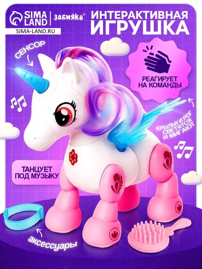 Волшебный друг для маленькой принцессы! Интерактивный единорог с светящимися крыльями и рогом реагирует на хлопки, движения и прикосновения. Игрушка танцует под музыку, мигает разноцветными огнями и создаёт атмосферу сказки в детской комнате.