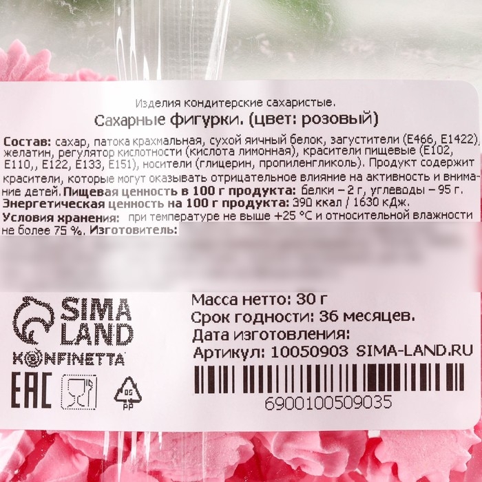 Безе сахарные розовые KONFINETTA для декора капкейков, торта, куличей и напитков, 30 г.