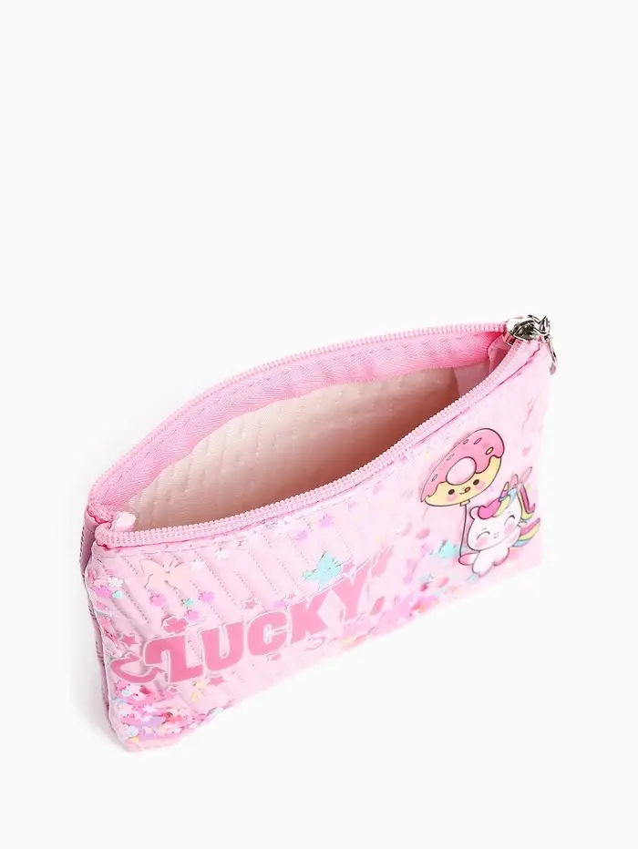 Эта маленькая розовая косметичка с милым зверьком — верный спутник для порядка в сумочке. Её плоский силуэт и тонкий профиль бережно хранят самое необходимое, не занимая лишнего места.
