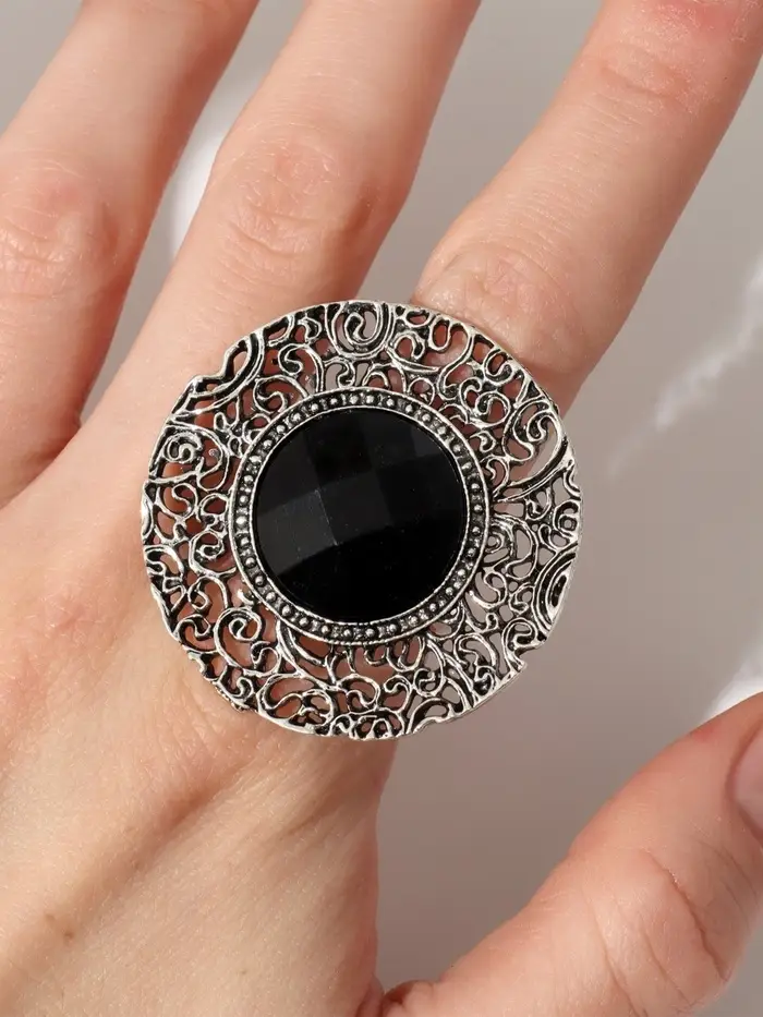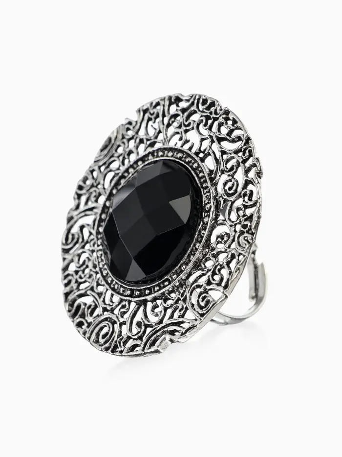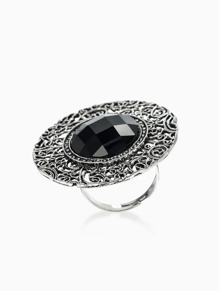 Кольцо «Этника. Ажурный круг», чёрное в чернёном серебре, безразмерное