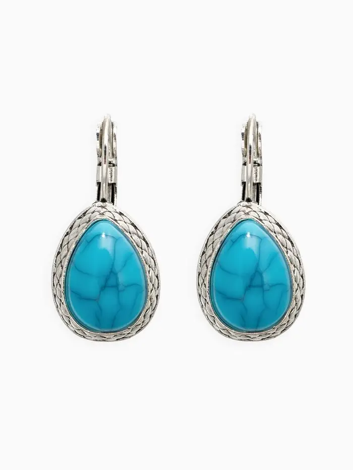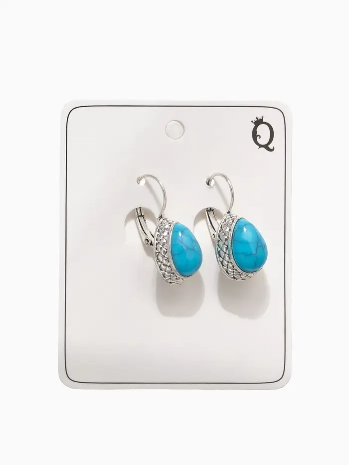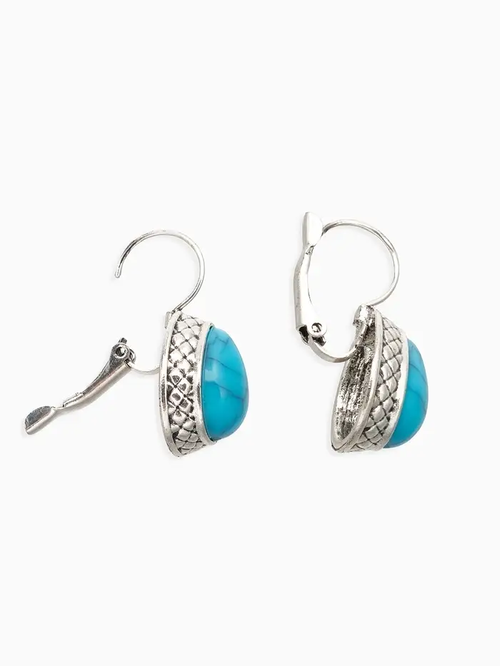 Серьги под натуральный камень «Этника», капля бирюзы, голубые в чернёном серебре