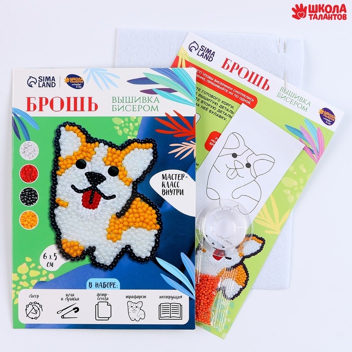 Вышивка бисером. Брошь «Пушистый корги», набор для творчестваа