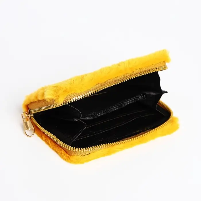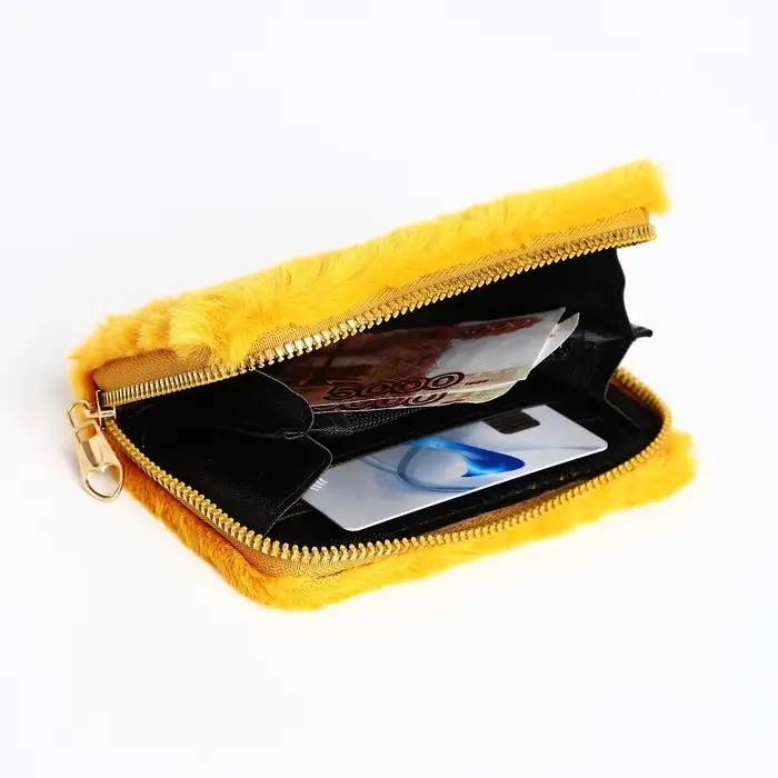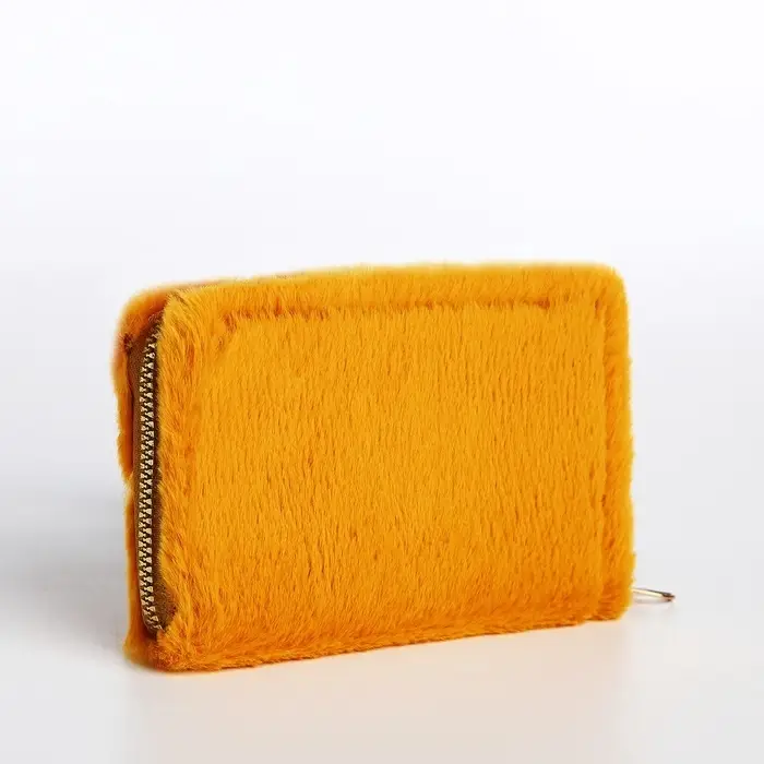 Кошелёк маленький, пушистый, на молнии, жёлтый