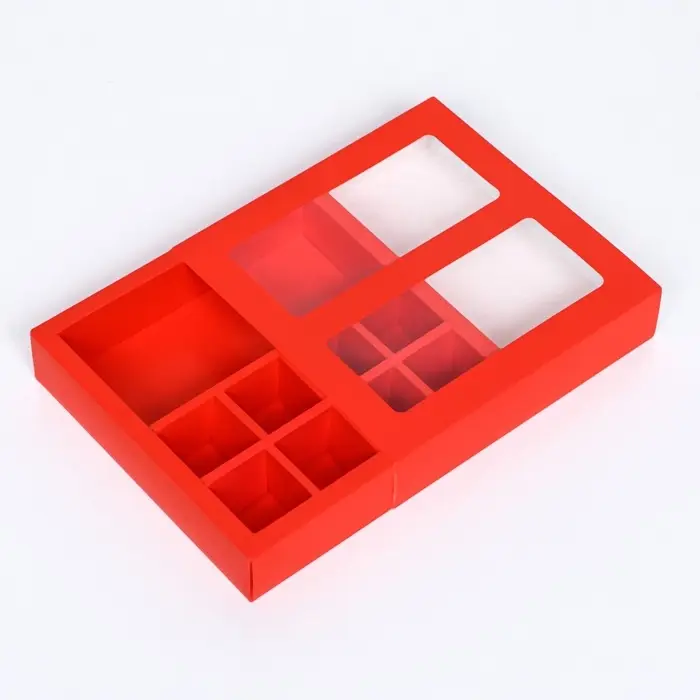 Готовый набор для успешных продаж: Эта коробка превращает набор конфет в законченный, подарочный продукт. Она привлекает внимание на витрине, упрощает процесс упаковки и гарантирует сохранность содержимого. Выбирайте алые коробки-сеты — для сладких подарков, которые всегда уместны.