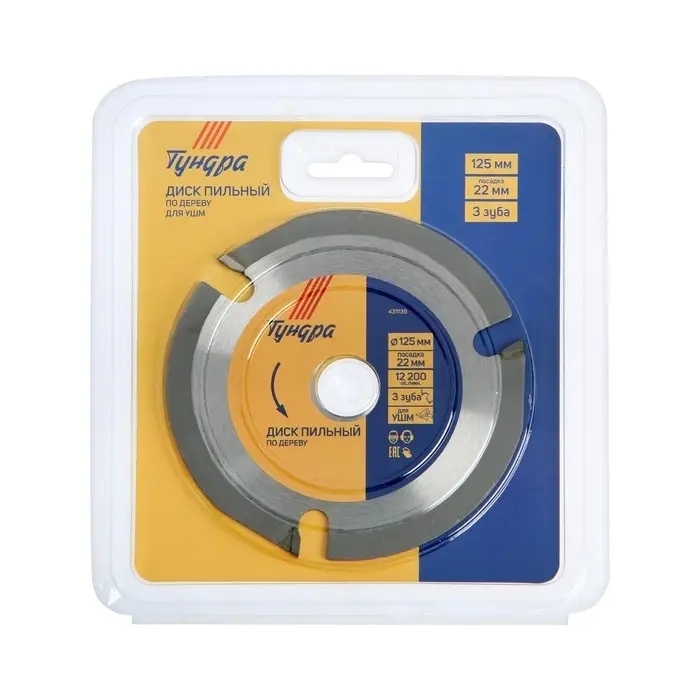Ваш надежный помощник для работы с деревом! Пильный диск ТУНДРА для УШМ (125×22 мм, 3 зуба) поможет быстро и плавно обработать любые деревянные поверхности, обеспечивая профессиональный результат.