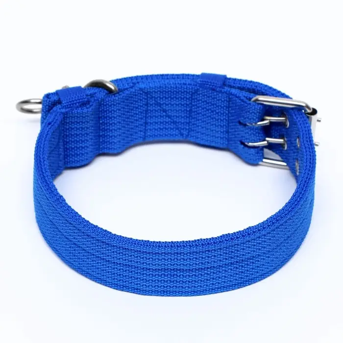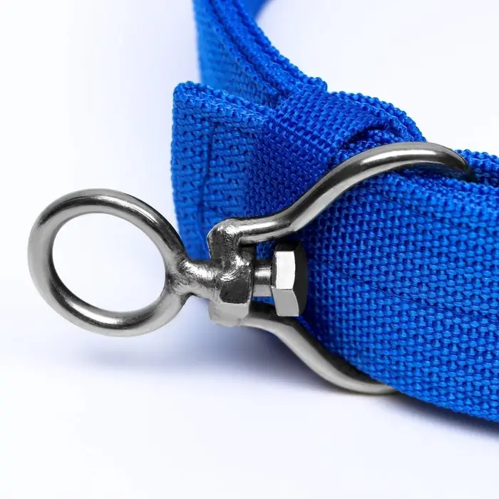 Четырехслойный ошейник для домашних питомцев с вертлюгом из полиэстера в ярком синем цвете - это идеальное аксессуар для вашего питомца! Ошейник подойдет собакам средних и крупных пород. Наш ошейник создан из высококачественного полиэстера, что делает его прочным и долговечным. Четыре слоя обеспечивают прочность, чтобы вы могли быть уверены в том, что ваш питомец будет надежно защищен, даже если он пытается вырваться.Вертлюг позволяет вашему питомцу свободно передвигаться и поворачиваться, не ограничивая его движения. Он устойчив к натяжению, что делает его идеальным выбором для активных и энергичных питомцев. Яркий синий цвет ошейника подчеркнет индивидуальность вашего питомца и позволит ему выделяться на фоне остальных. Этот ошейник также будет отлично сочетаться с его шерстью и добавит стильного акцента к его образу. Не ждите! Приобретите четырехслойный ошейник с вертлюгом прямо сейчас и обеспечьте своему питомцу комфорт и стиль во время прогулок!