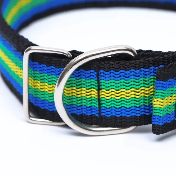 Четырехслойный, разноцветный ошейник для собак – идеальное решение для стильного и безопасного выгула вашего любимца. Ошейник подойдет для собак средних и крупных пород.Наш ошейник изготовлен из высококачественного полиэстера, обеспечивающего прочность и долговечность изделия. Четырехслойная конструкция делает его устойчивым к повреждениям и идеально подходит для активных собак всех пород. Что делает этот ошейник особенным, так это его разноцветное исполнение. Благодаря насыщенным и ярким цветам, ваш питомец всегда будет выглядеть стильно и привлекательно. Этот ошейник станет настоящим акцентом на шее вашей собаки и подчеркнет ее индивидуальность. Ошейник также регулируется по длине, что позволяет подобрать идеальный размер для вашей собаки. Безопасность вашего питомца – наш приоритет. Полиэстер имеет высокую прочность, что обеспечивает надежное удержание собаки. Ощущение дополнительной безопасности создается также благодаря специальной фурнитуре из нержавеющей стали, которая гарантирует надежное крепление ошейника и предотвращает его случайное расстегивание. Позвольте вашей собаке быть в центре внимания с нашим четырехслойным, разноцветным ошейником из полиэстера. Этот стильный и безопасный аксессуар станет прекрасным дополнением к ее образу и позволит вашему питомцу всегда выглядеть на высоте.