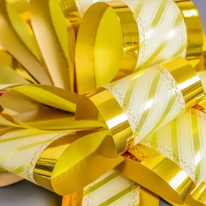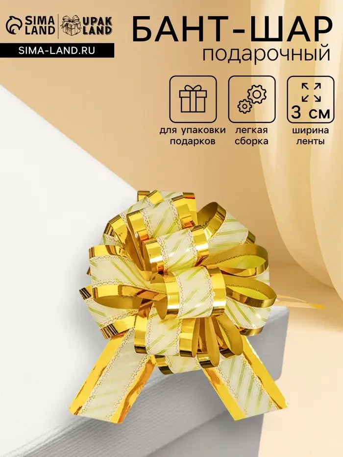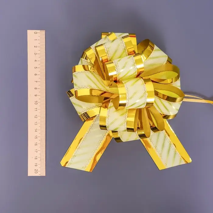 Яркий выбор для позитивного настроения: Этот бант выбирают, когда хотят, чтобы подарок ассоциировался с солнечным светом и хорошими эмоциями. Он особенно хорошо сочетается с упаковкой синего, зелёного, коричневого или белого цвета, создавая контрастный и запоминающийся дуэт. Выбирайте золотистый бант-шар с полосками, чтобы ваш подарок сиял позитивом.