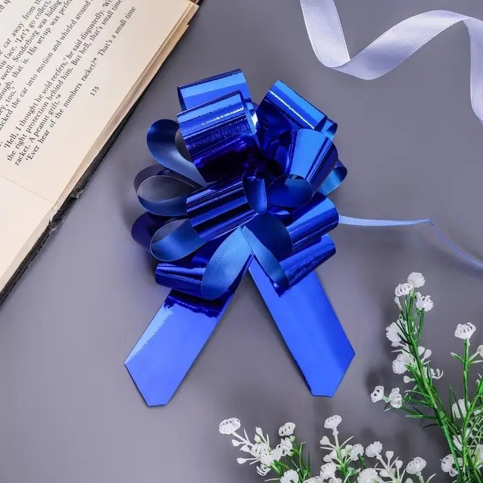 Готовое решение для стильной упаковки. Бант-шар крепится на любой вид упаковки с помощью клеевой основы или ленты. Не требует навыков декорирования — достаточно закрепить на подарке. Купить синий бант-шар — значит добавить упаковке законченный, праздничный вид за секунды.