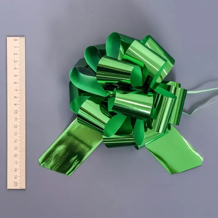 - Практичный материал с устойчивым покрытием: Пластиковая лента с металлизированным слоем устойчива к выцветанию и деформации. Бант сохраняет форму и интенсивный блеск при хранении и транспортировке.