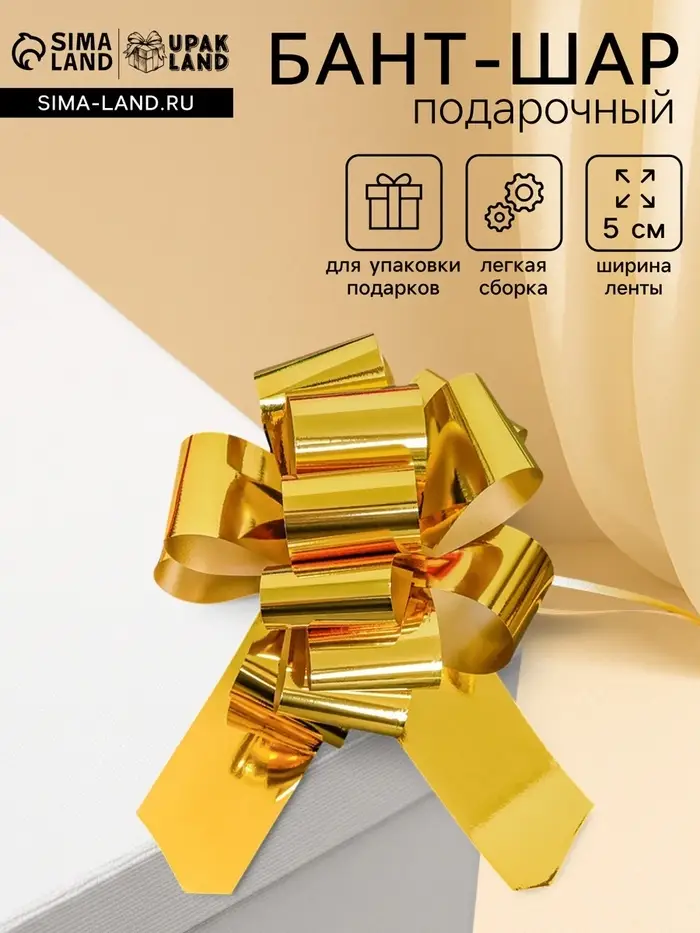 Подарочный бант - шар №5, золото, для упаковки подарков