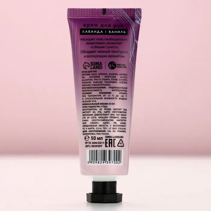 Крем для рук, 50 мл, аромат лаванды и ванили, Чистое счастье