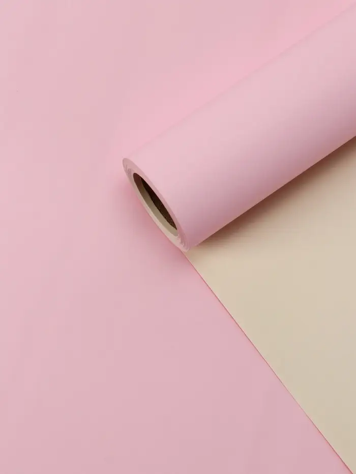 Деликатное оформление с эффектом бархатистого прикосновения. Двусторонняя матовая плёнка в оттенках «чайная роза» и «кремовый» – профессиональный флористический материал в рулоне 10 метров. Предназначена для упаковки букетов, подарков и создания композиций, где ценится сдержанная роскошь и отсутствие глянцевых бликов.