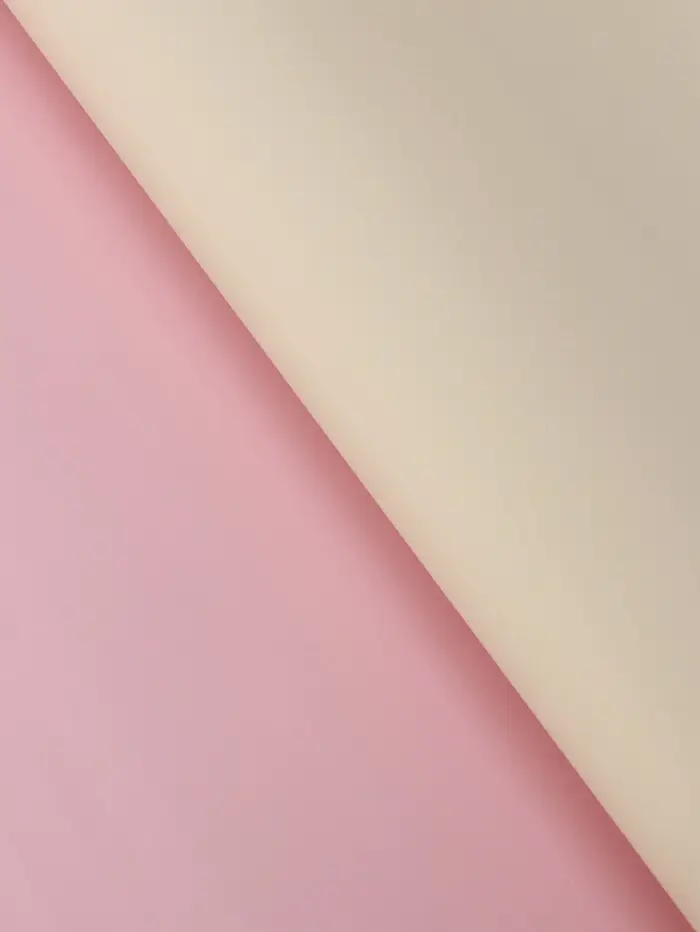 - Два рабочих цвета в одном срезе: Лицевая сторона выполнена в приглушённом розовом тоне «чайная роза», оборотная — в мягком сливочно-бежевом. Флорист волен выбирать доминирующий оттенок под конкретный букет или миксовать слои, создавая объёмный переливчатый край.