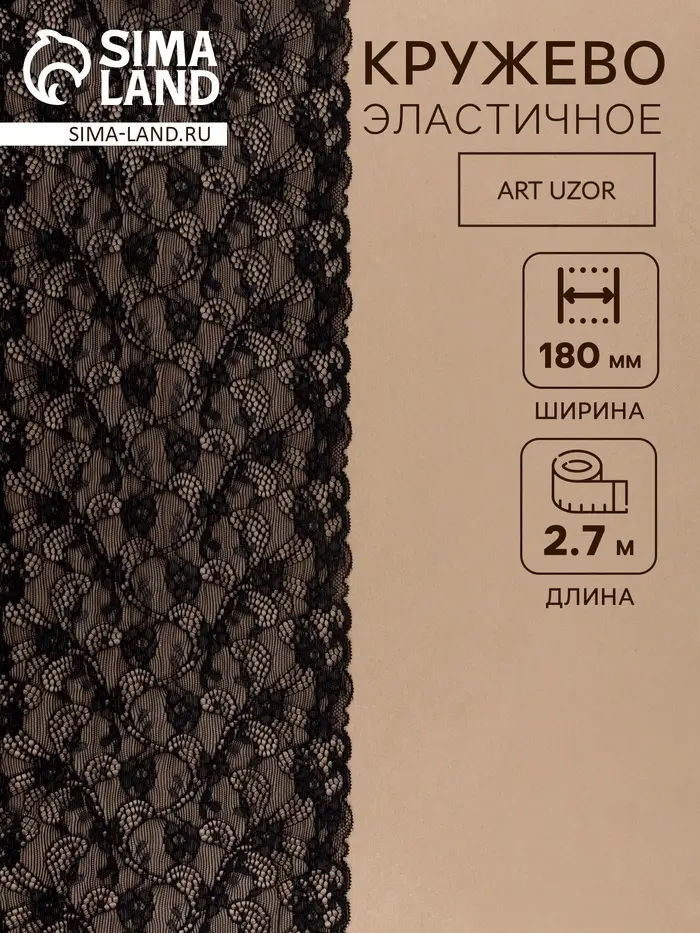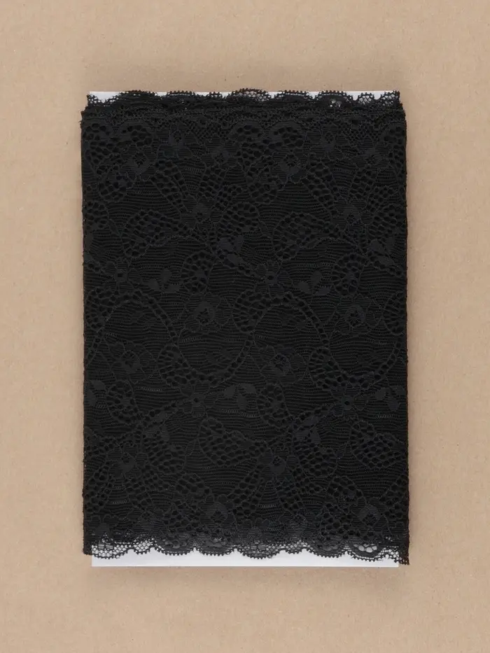 Кружевная эластичная ткань, 180 мм, 2.7±0.5 м, чёрная