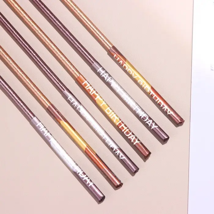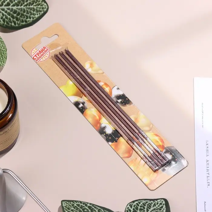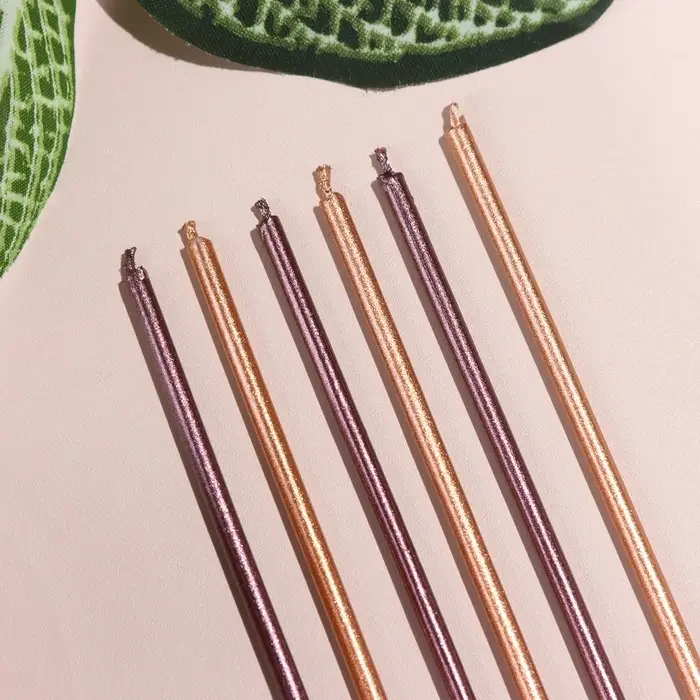 Свечи в торт, 6 штук Happy, 17 см, золотой с металликом