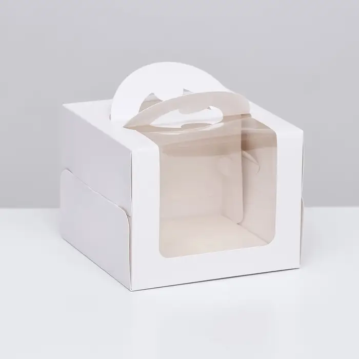 - Классический белый цвет и высокая прочность: Чистый белый цвет служит универсальным фоном, подчёркивающим красоту десерта. Высокая плотность картона (400 г/м²) гарантирует, что коробка не деформируется под весом торта и надёжно защитит его при доставке.