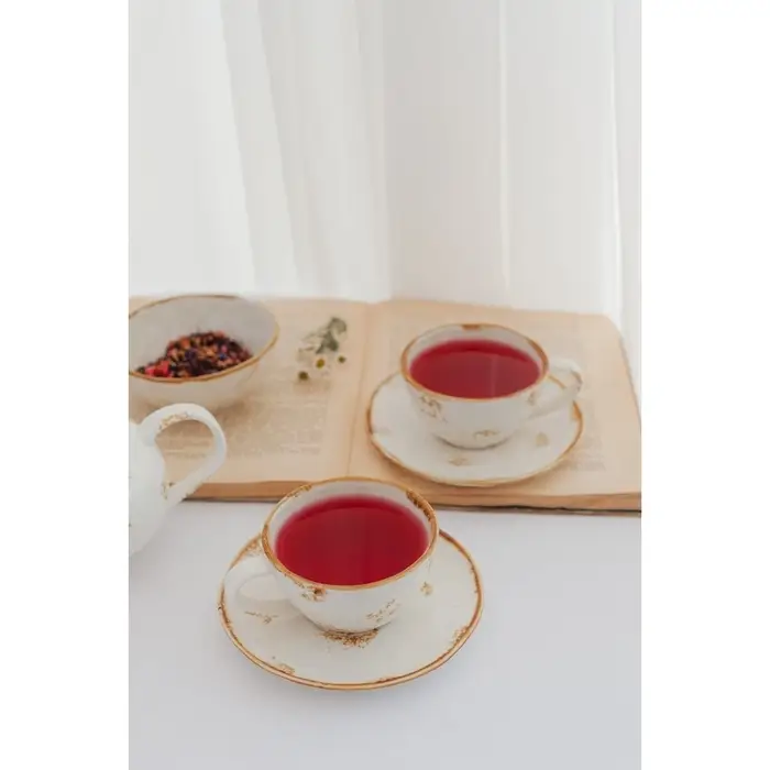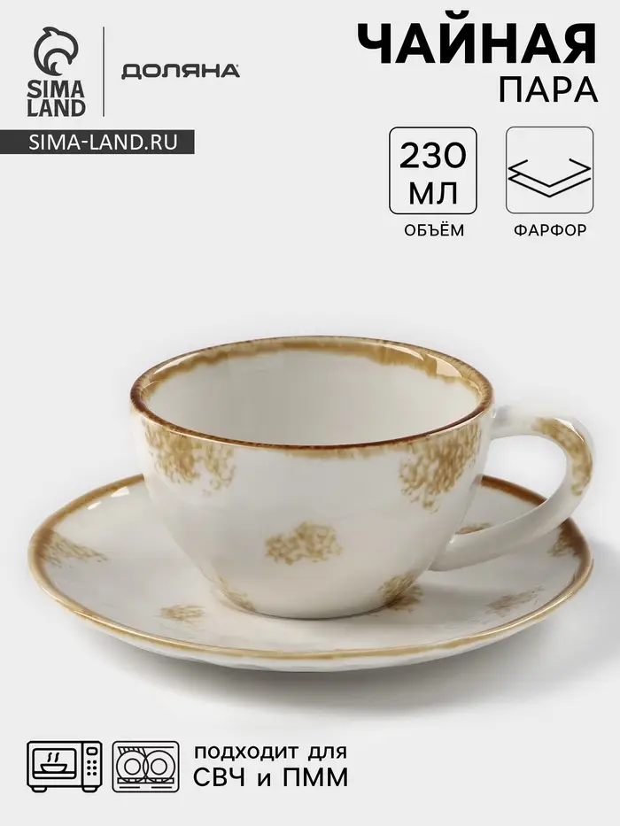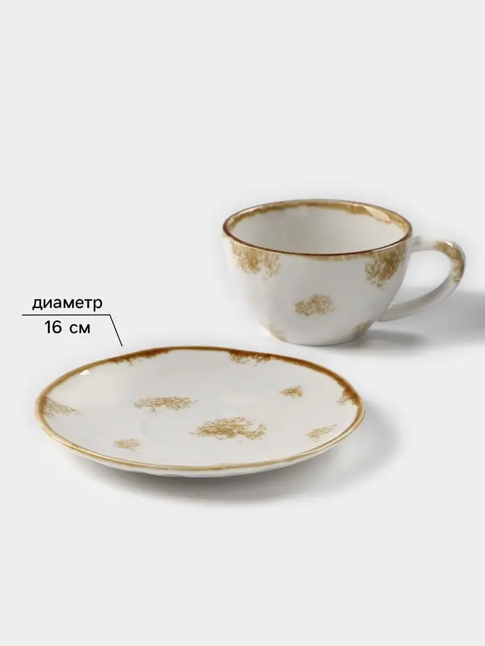 Чайная пара Доляна Organic Gold, чашка 230 мл, блюдце d=16 см, фарфор, белая