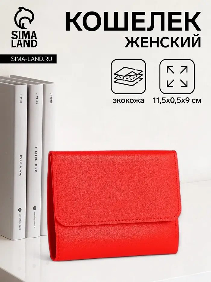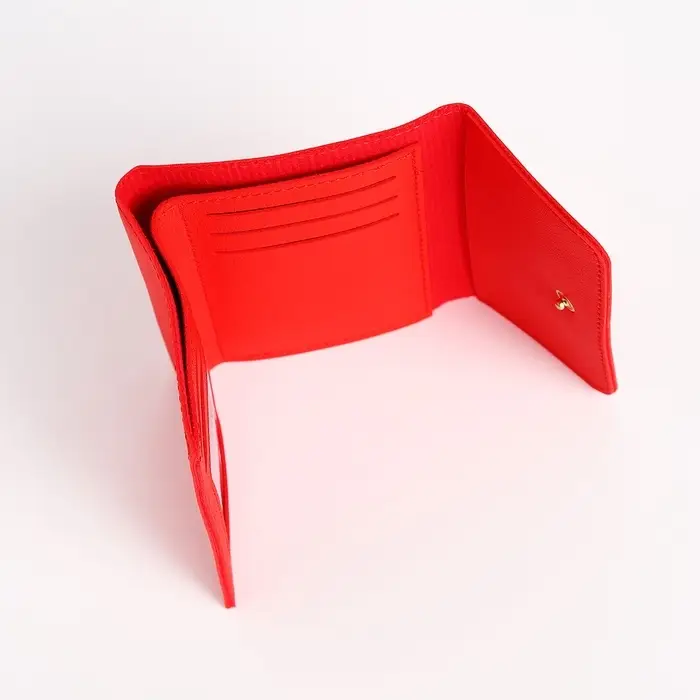 Кошелёк женский на кнопке 11.5×0.5×9 см, однотонный, алый