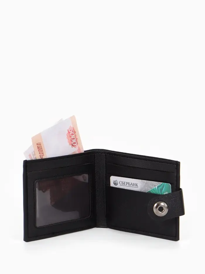 Портмоне мужское на магните, отдел для купюр, для карт, чёрное