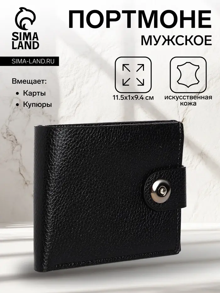 Портмоне мужское «Кайс», на магните, отдел для карт, монет, чёрное