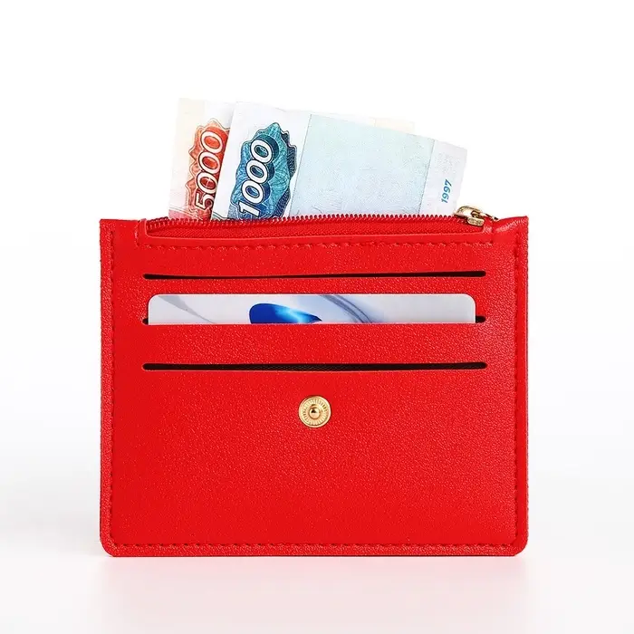 Этот красный картхолдер с монетницей освобождает руки от поиска карт и мелочи. Компактный аксессуар из искусственной кожи помещается в ладони, но хранит всё необходимое для ежедневных платежей. Яркий оттенок добавляет образу уверенности, а продуманная организация отделений экономит время у кассы.