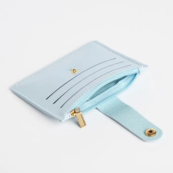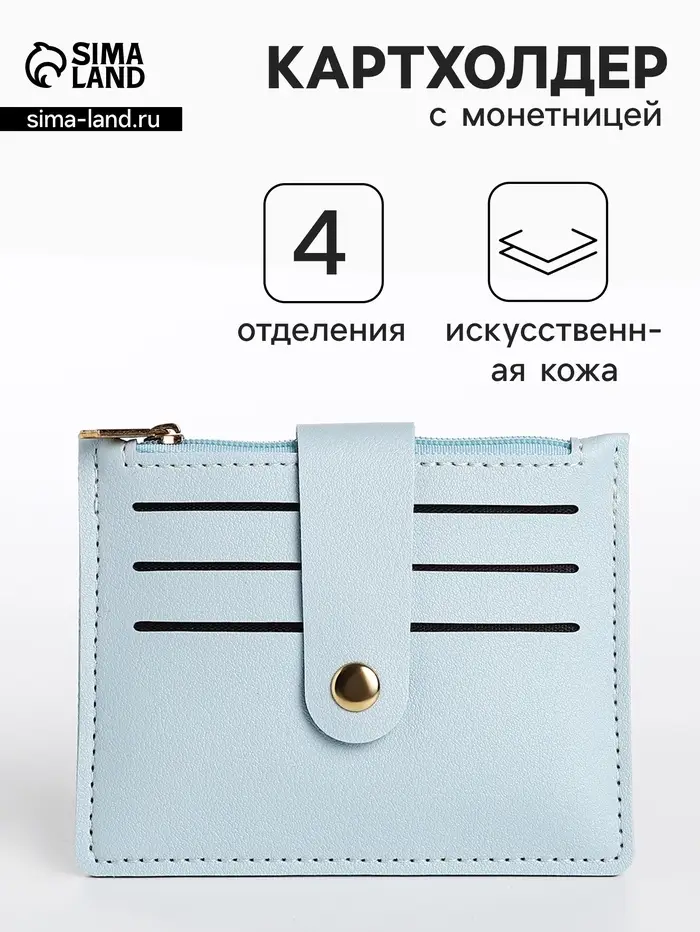 Этот голубой картхолдер с монетницей — аккуратный и надёжный спутник для ваших карт и мелочи. Он создан для женщин и девушек, которые ценят порядок в сумочке и предпочитают лёгкие, стильные аксессуары.