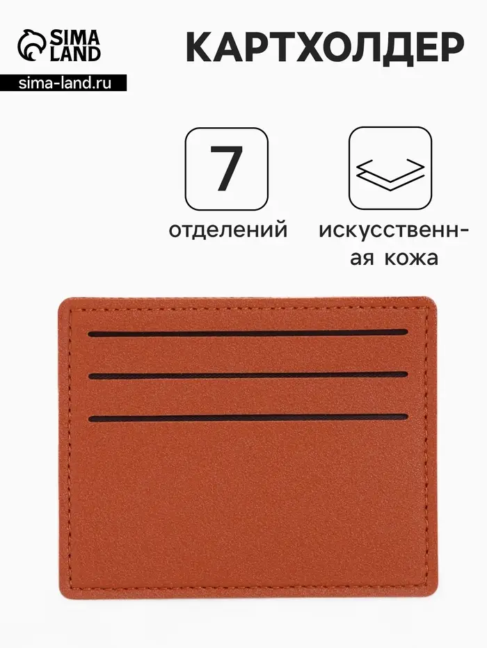 Картхолдер, на 6 карт, отделение для купюр, рыжий