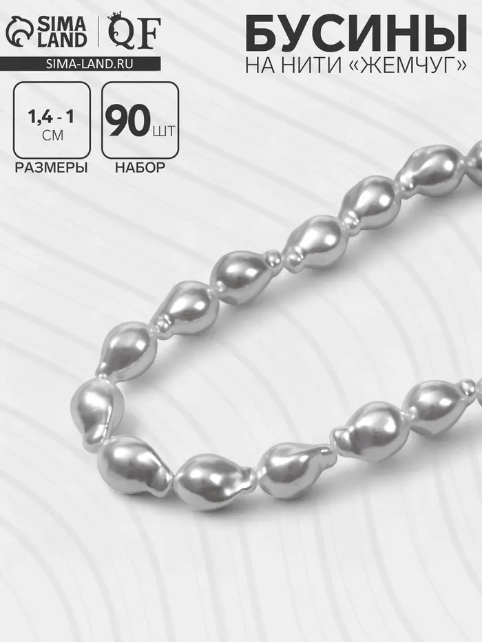 Бусины пластиковые на нити «Жемчуг», 14×10 мм, набор 90 шт., цвет белый