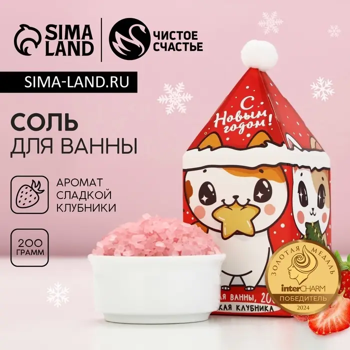 Соль для ванны «С Новым годом», 200 г, аромат сладкой клубники, Чистое счастье