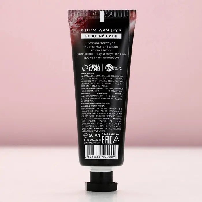 Крем для рук, 50 мл, аромат розового пиона, Чистое счастье