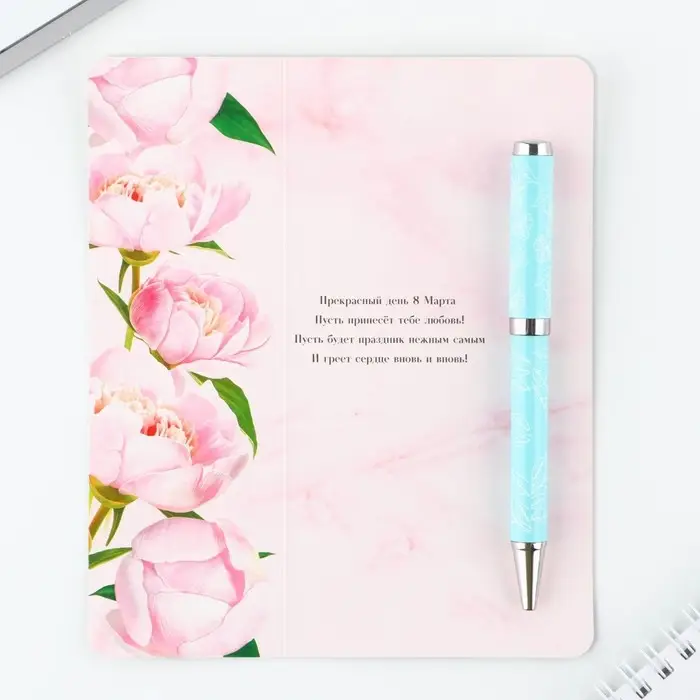 Ручка шариковая, синяя паста, 1.0 мм, на открытке металл, 1 мм «Прекрасный день 8 марта»