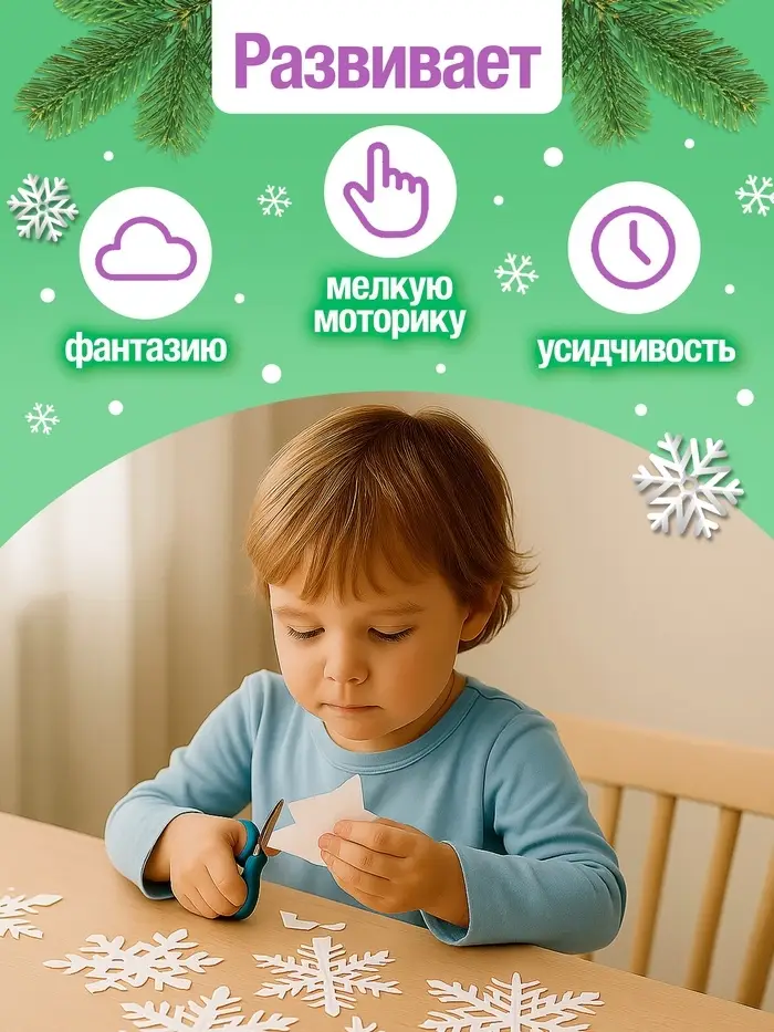 - Занятие вырезанием снежинок объединит семью за творческим процессом, подарит минуты радости и веселья.