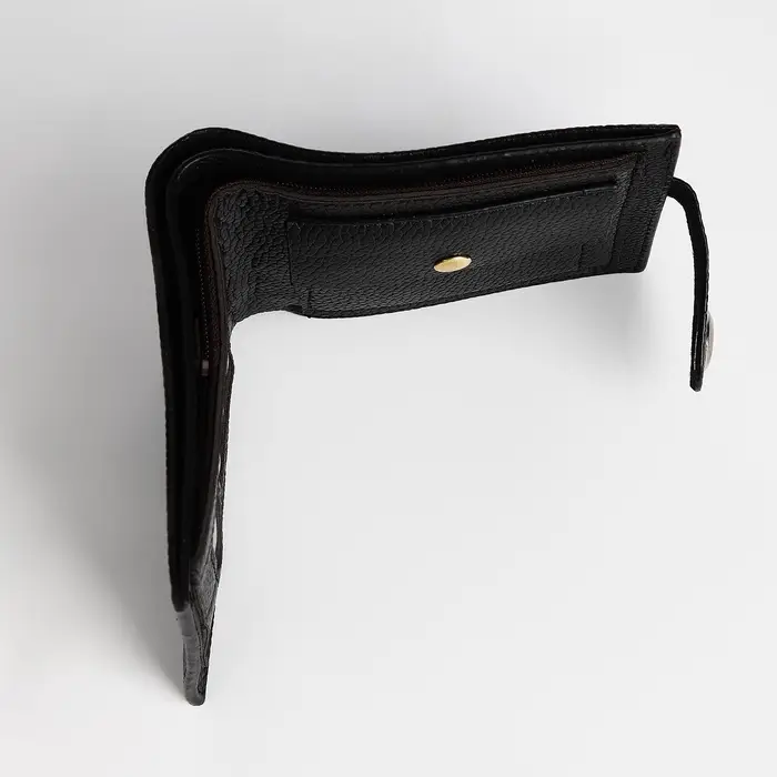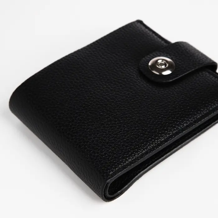 Магнит мягко фиксирует кошелёк, сообщая, что всё находится в безопасности. Три отдельных отделения поддерживают систему хранения, где каждая вещь имеет своё место. Форма кошелька удобно лежит в ладони, не создавая лишнего объёма в кармане.