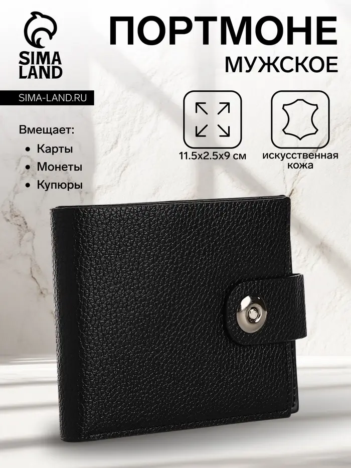 Портмоне мужское на магните, отдел для купюр, карт, монет, чёрное